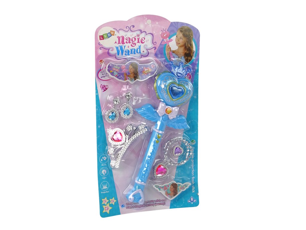 Hůlka má funkci projektoru, která promění místnost v kouzelnou oblohu plnou hvězd, blikající světýlka a pohádkové melodie se rozsvítí po stisknutí tlačítka na přední straně. Součástí kouzelného setu jsou také náušnice, korunka, prsten a náhrdelník s různobarevnými kameny. Celá sada je vedena v pohádkových odstínech.