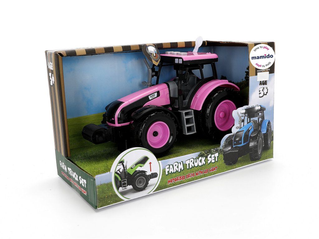 Růžový interaktivní traktor se zvukovou a světelnou funkcí pro děti od 3 let. Traktor byl vyroben z nejkvalitnějšího plastu s mimořádným důrazem na detail. Kapotu traktoru lze otevřít a na horní straně kabiny řidiče jsou umístěna zvuková tlačítka, která po stisknutí vydávají zvuky couvání, klaksonu a startování motoru. Traktor má také dvě svítící LED světla.