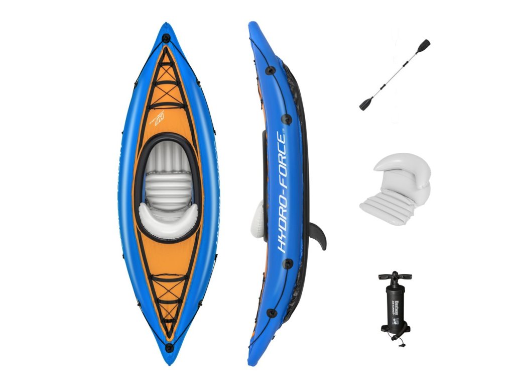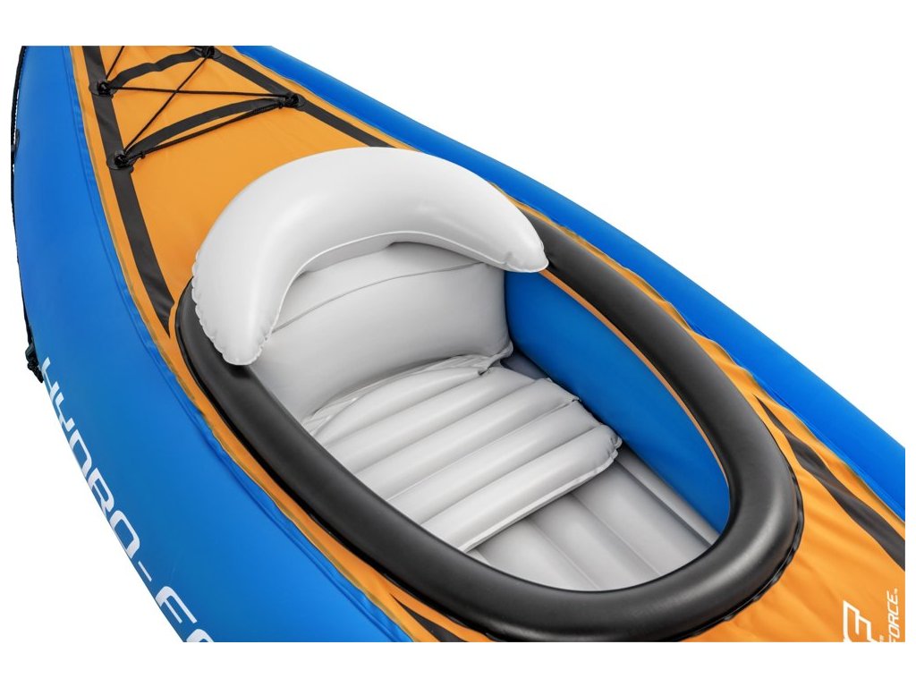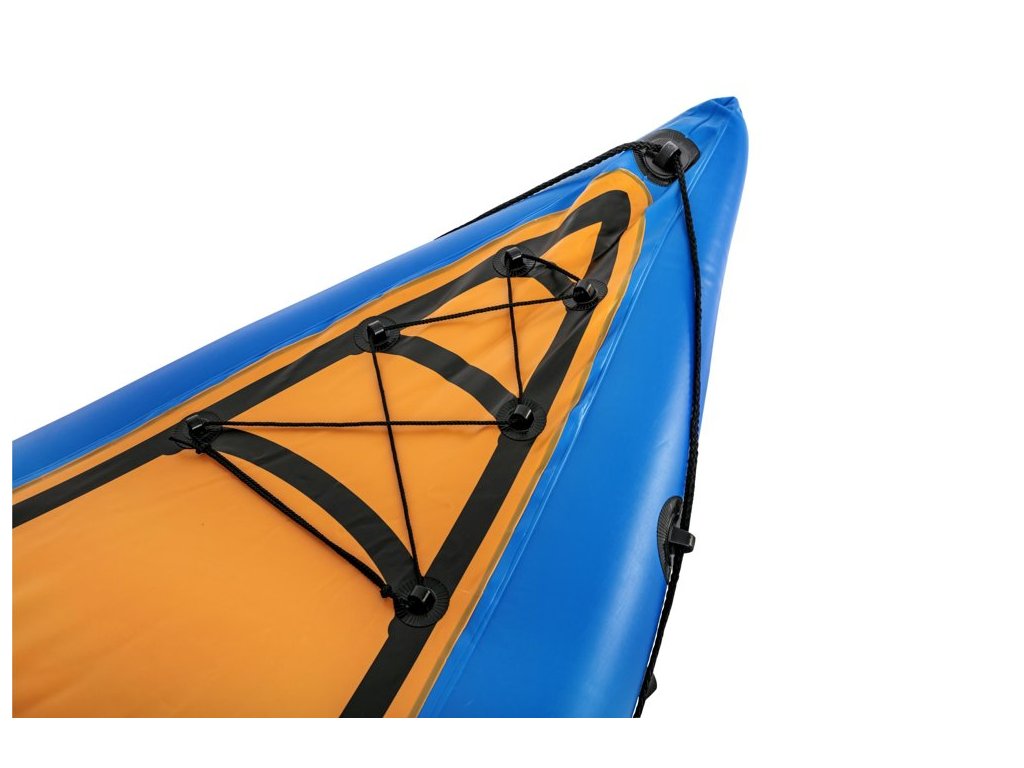 Nafukovací kajak je skvělou volbou pro plavbu na jezerech, zátokách, řekách nebo jen v bazénu. Je vyroben z vinylu odolného proti poškození. Pohodlný kokpit má nafukovací sedadlo s měkkou zádovou opěrkou, která poskytuje pohodlí při delších plavbách.