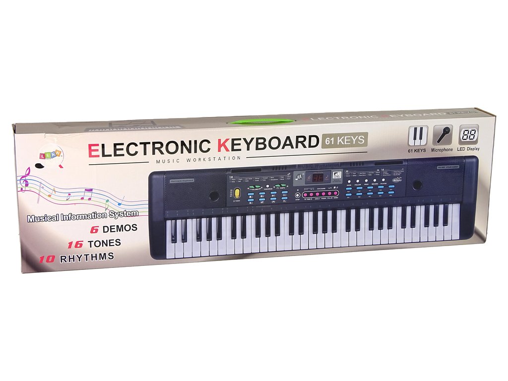 Keyboard s mikrofonem je skvělá hračka pro malé hudební nadšence. S 61 klávesami a mikrofonem mohou děti hrát i zpívat své oblíbené písně. Ergonomický design a lehká konstrukce zajišťují pohodlné používání i snadné přenášení. Držák na noty umožňuje umístit texty písní a uspořádat tak zábavné karaoke večery.
