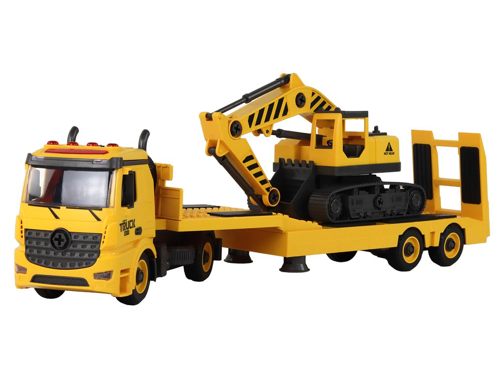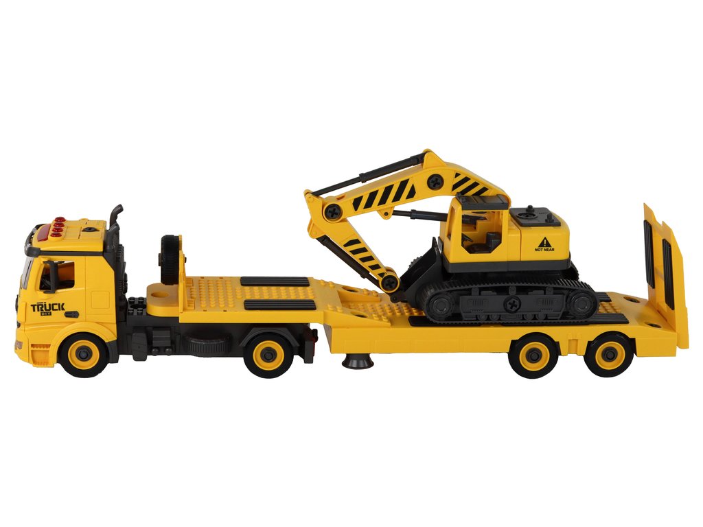 Konstrukční DIY odtahové autíčko s pásovým rypadlem žluté