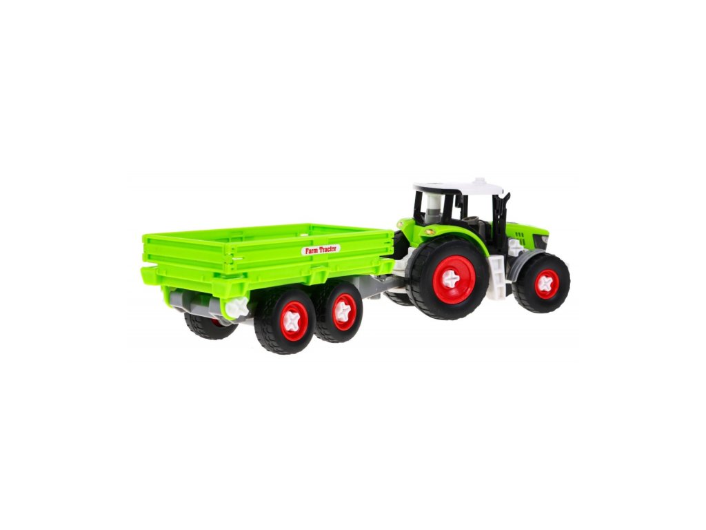 Konstrukční traktor s přívěsem zelený