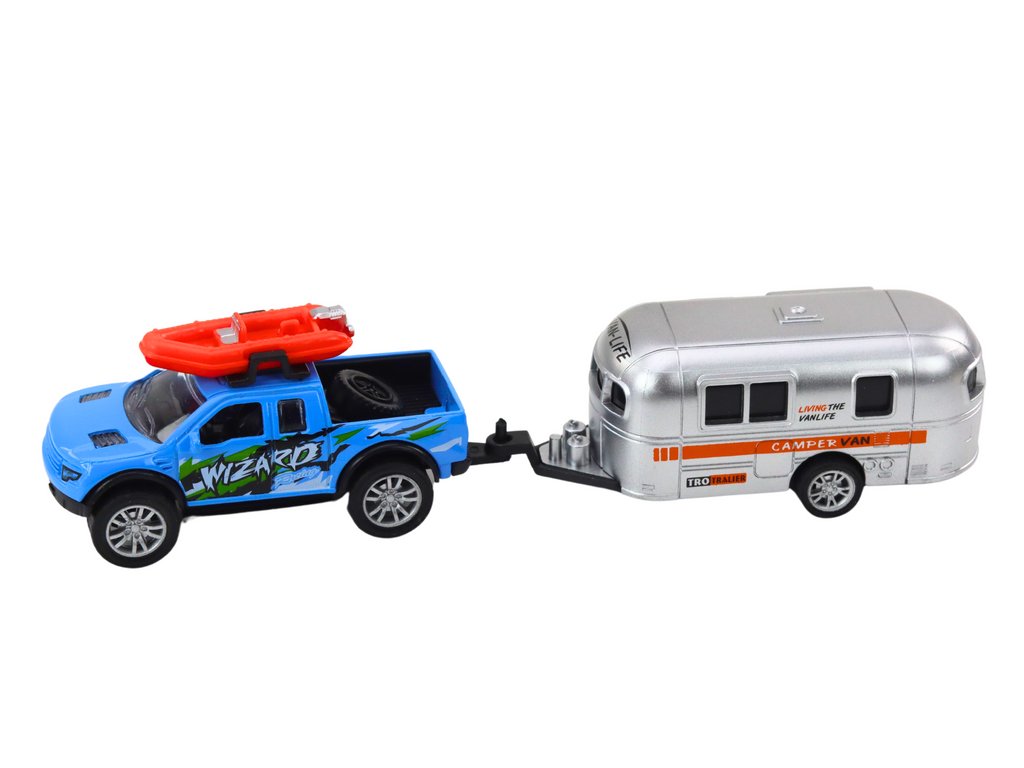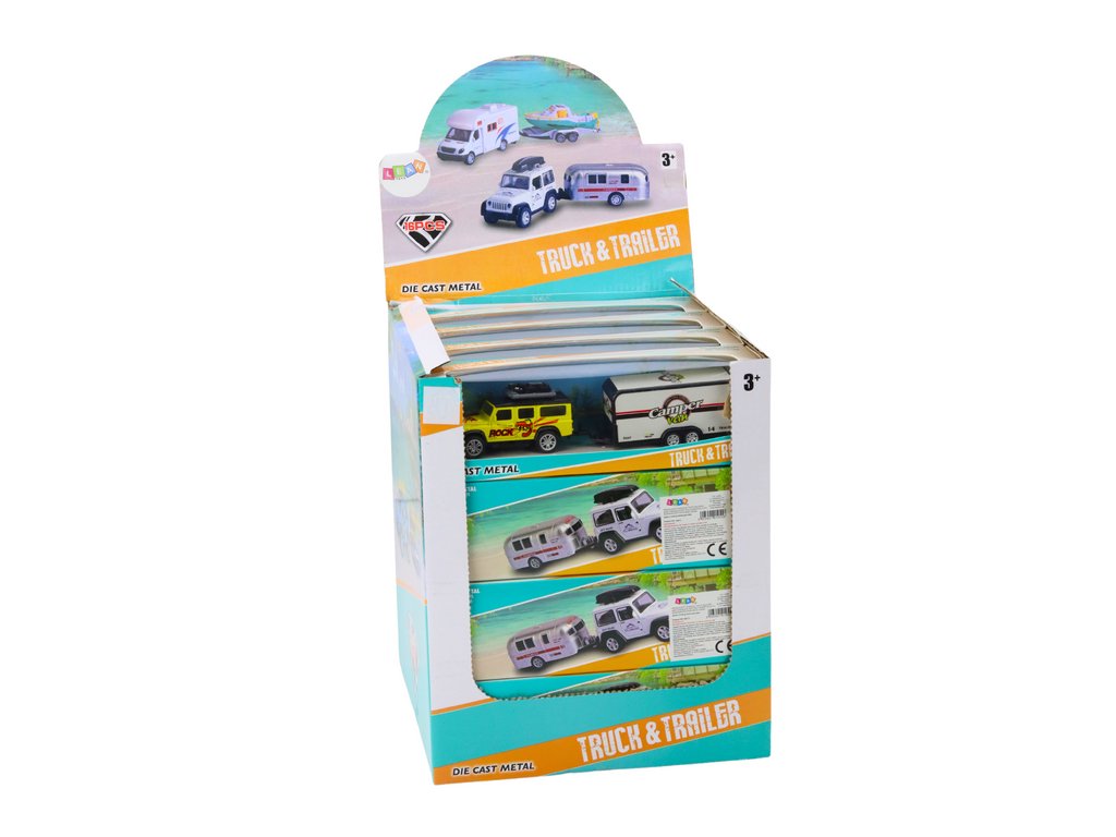 Kovové terénní autíčko s karavanem mix