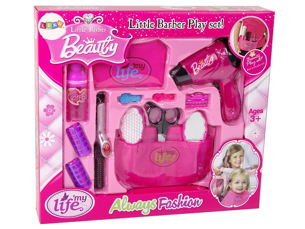 Sada se skládá z prvků přizpůsobených malým ručkám dítěte. Obsahuje hračkářský fén a kulmu, realisticky vypadající plastové nůžky, růžový hřeben a zrcátko a také kadeřnickou zástěru, ve které můžete nosit výše zmíněné doplňky.