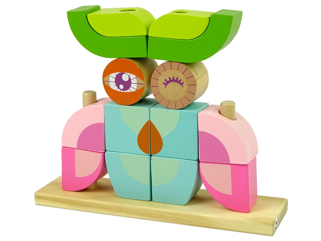 Dětská sada dřevěných kostek je skvělý dárek pro nejmenší děti. Hračka u dětí procvičí jemnou motoriku a představivost. Kostky ve tvaru sovy se skládají ze základny s tyčemi a 12 kostek. Ze všech dílků můžete sestavit různá zvířátka nebo předměty.