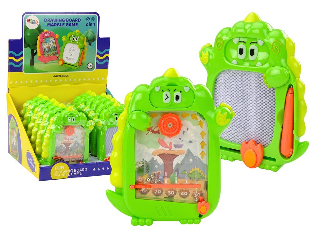 Oboustranná kreslící tabule a kapesní hra 2v1 Zelený Dinosaurus