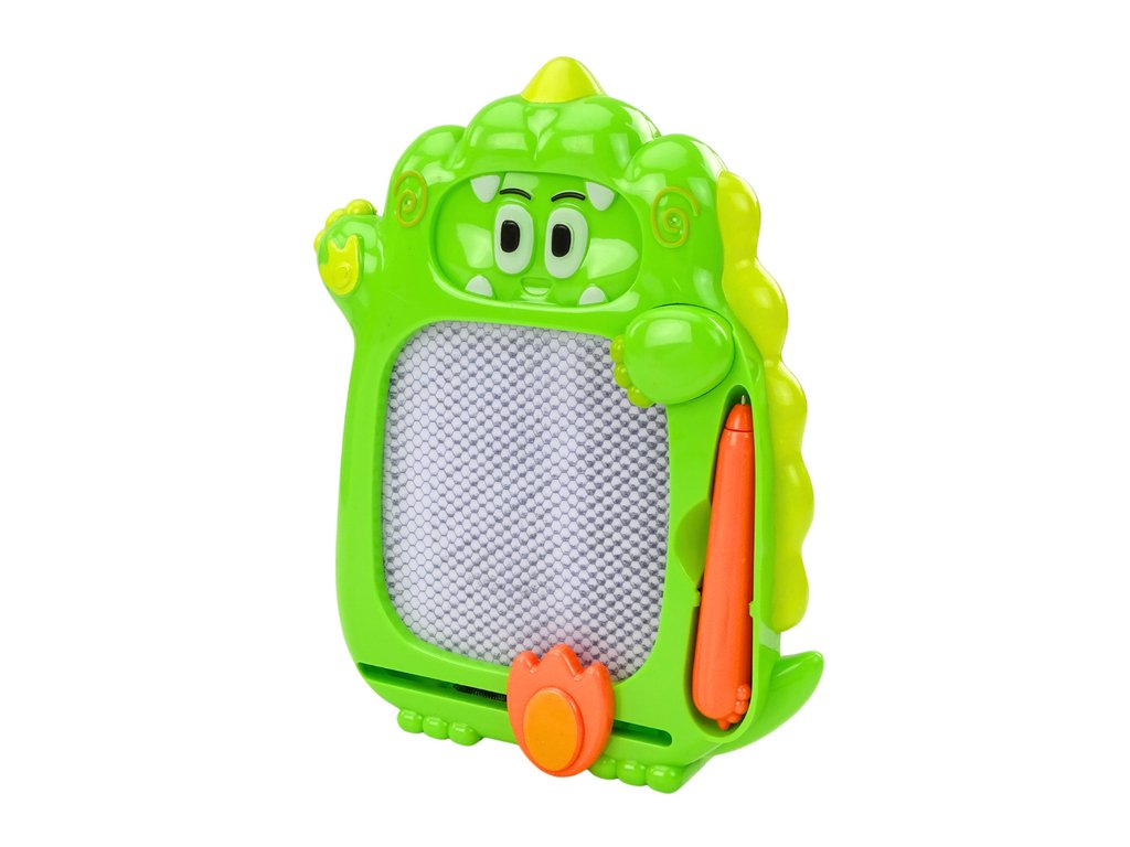 Oboustranná kapesní tabule ve tvaru zeleného dinosaura je ideální hračkou, která spojuje kreativitu s obratnostní zábavou. Z jedné strany tabule slouží k kreslení a funguje na principu magického záznamníku. K sestavě je přiložený speciální tužka, kterou může dítě kreslit různé vzory a tvary. Když je kresba hotová, stačí posunout jezdec na spodku tabule, aby se úplně vymazala a dítě mohlo začít znovu tvořit. Tato funkce umožňuje dětem neomezenou kreativitu a rozvíjení výtvarných dovedností bez použití papíru a tužek.