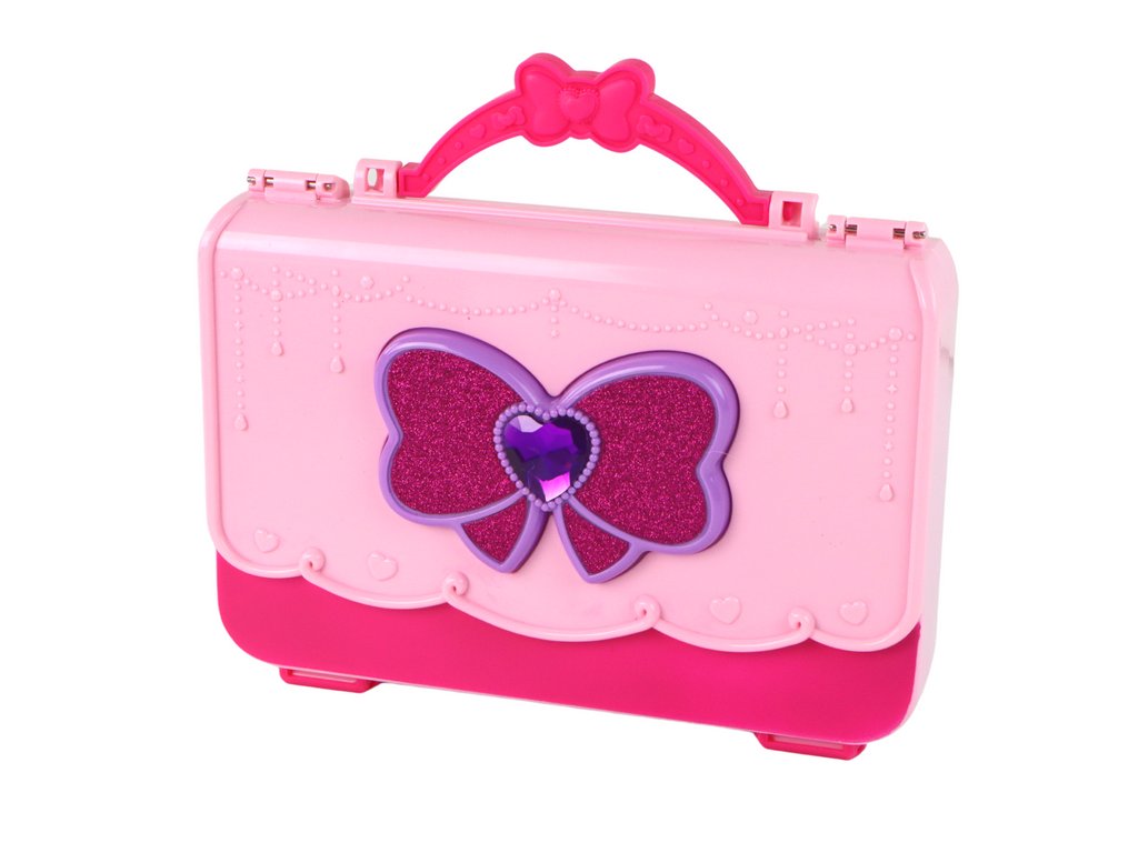 Kosmetický kufřík je jako stvořený pro malé umělkyně krásy. Jeho růžová barva a fialová třpytivá mašle zdobená křišťálovým srdíčkem mu dodávají kouzelné kouzlo.