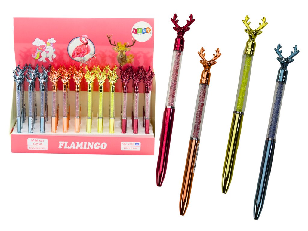Tato jedinečná propiska spojuje styl a praktičnost, a díky ozdobě ve tvaru jelena na svém konci působí elegantně a originálně. S černým nebo modrým inkoustem, který zajišťuje hladké a plynulé psaní, se stává skvělým společníkem pro každodenní poznámky i výjimečné příležitosti. Ideální volba pro ty, kteří chtějí svým písemnostem dodat špetku elegance a osobitosti.