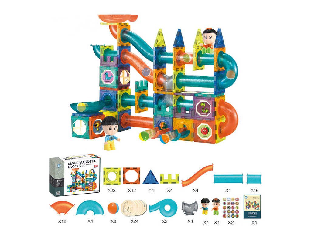 Magnetická stavebnice kuličková dráha 128 dílů