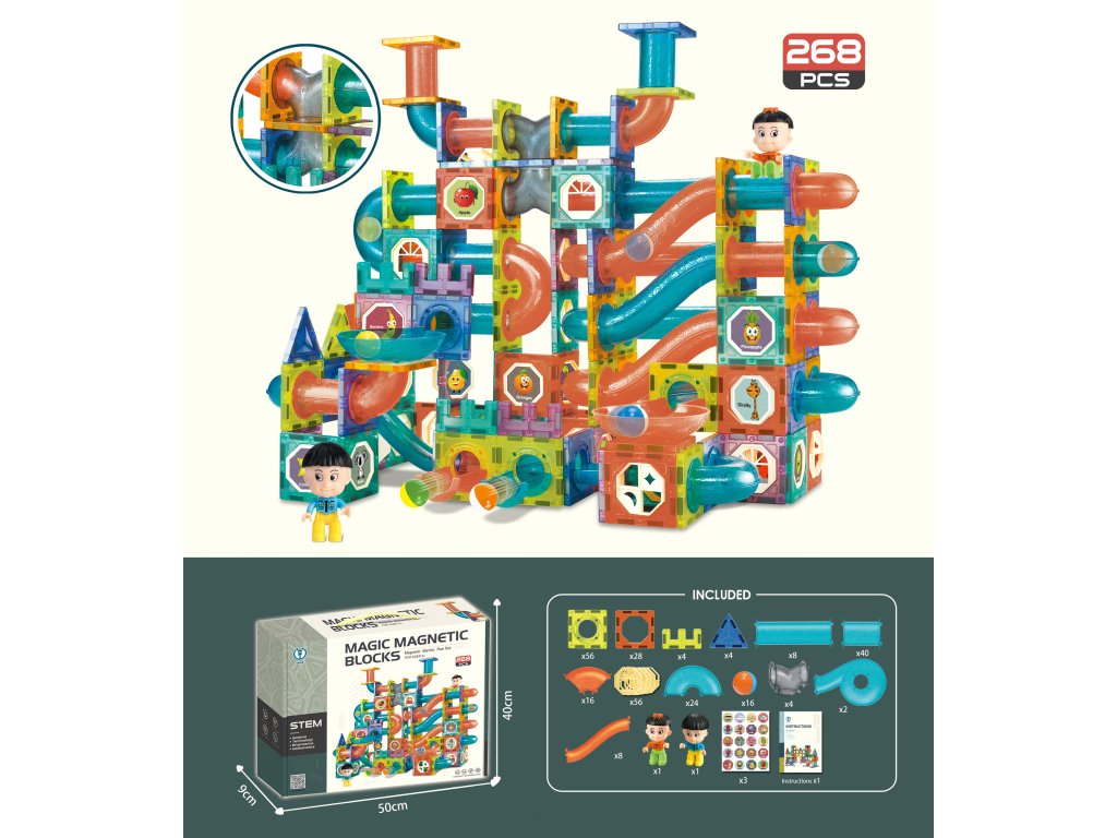 Magnetická stavebnice kuličková dráha 268 dílů XXL