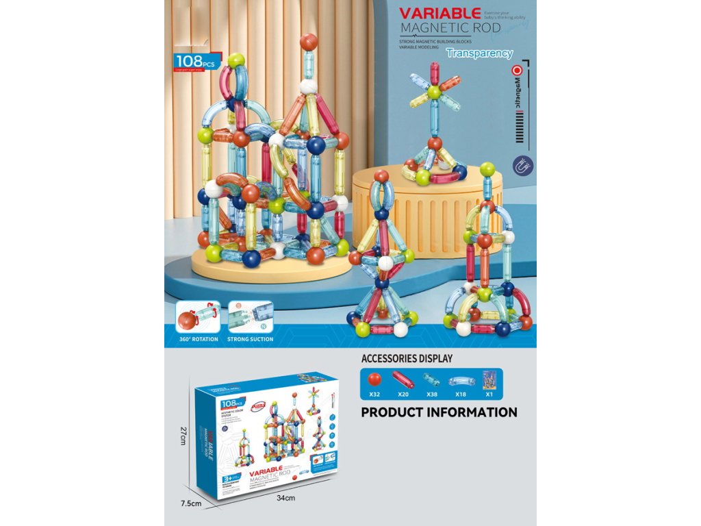 Variabilní magnetické tyče obsahující 108 dílků představují ideální nástroj pro rozvoj kreativity a technického myšlení u dětí. Tato stavebnice umožňuje dětem vytvářet různé struktury a modely díky silným magnetickým spojům a průhledným, barevným dílkům. Děti mohou experimentovat s různými tvary a mechanismy, což podporuje jejich prostorovou představivost a jemnou motoriku. Stavebnice je navržena tak, aby byla bezpečná a snadno ovladatelná, ideální pro děti od 3 let.