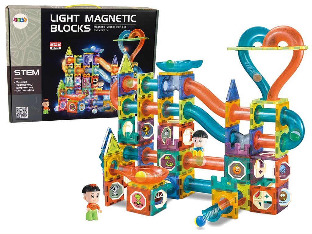 Magnetická svítící stavebnice kuličková dráha 202 dílů