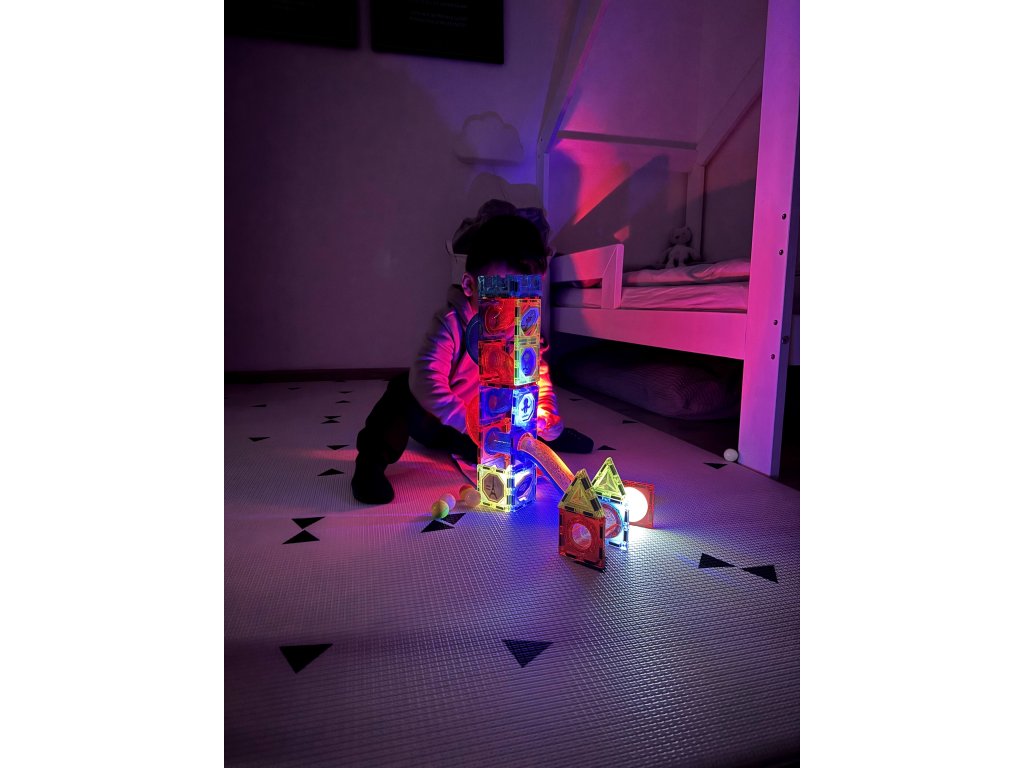 Magnetické kostky jsou vynikající vzdělávací hračkou, rozvíjí dětskou kreativitu, učí trpělivosti a soustředění. V brožuře, která je součástí sady, jsou uvedené ukázky dráhy. Některé komponenty mají zabudované osvětlení, aby hračka vypadala nápaditě.