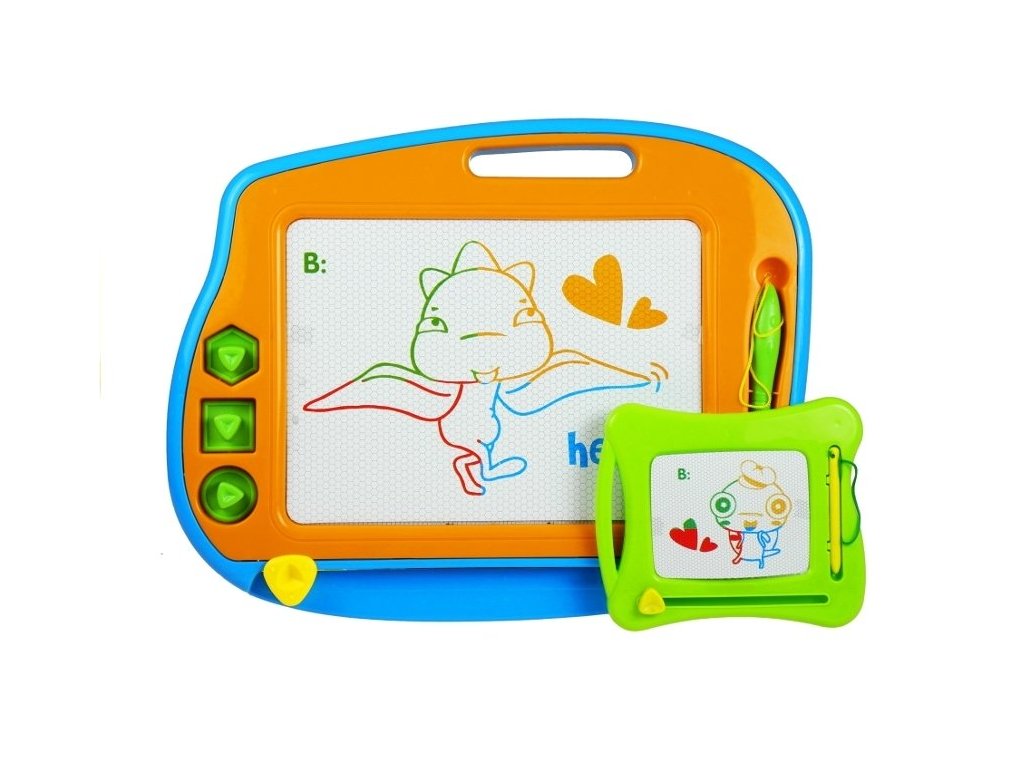 Hračka Magnetická kreslící tabule 2v1 obsahuje dvě tabulky - jednu větší a jednu menší. Kreslící magnetická tabule je univerzální a jednoduchá hračka pro všechny děti. Dítě se naučí estetickému cítění a rozvíjí své kreativní dovednosti. Sada se skládá z dvou kreslících tabulek, dvou stylus a 3 razítek.