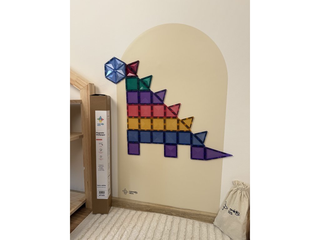 Magnetická tapeta Mamido Tiles přinese dětem ještě více zábavy, tvoření a učení díky magnetické síle a snadné instalaci. Stačí ji nalepit na hladkou stěnu a během okamžiku vznikne interaktivní prostor pro magnetky, kreslení křídou, malování omyvatelnými barvami i psaní fixem na tabule.