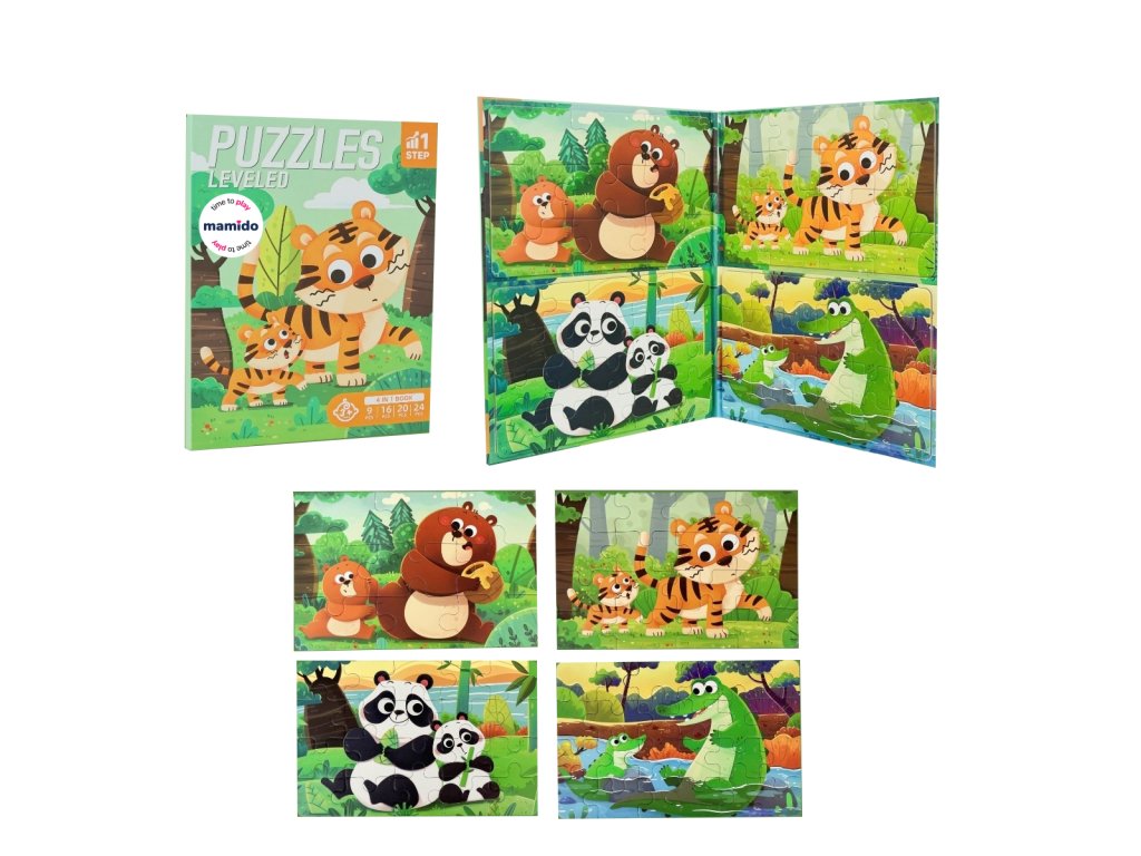 Objevování světa puzzle začíná jednoduše a postupně se stává větší výzvou. Tento barevný 4v1 set se zvířátky provází děti čtyřmi úrovněmi obtížnosti – od 9 až po 24 dílků. Každý obrázek přináší roztomilý motiv, který podporuje soustředění, jemnou motoriku i radost z dokončeného díla.