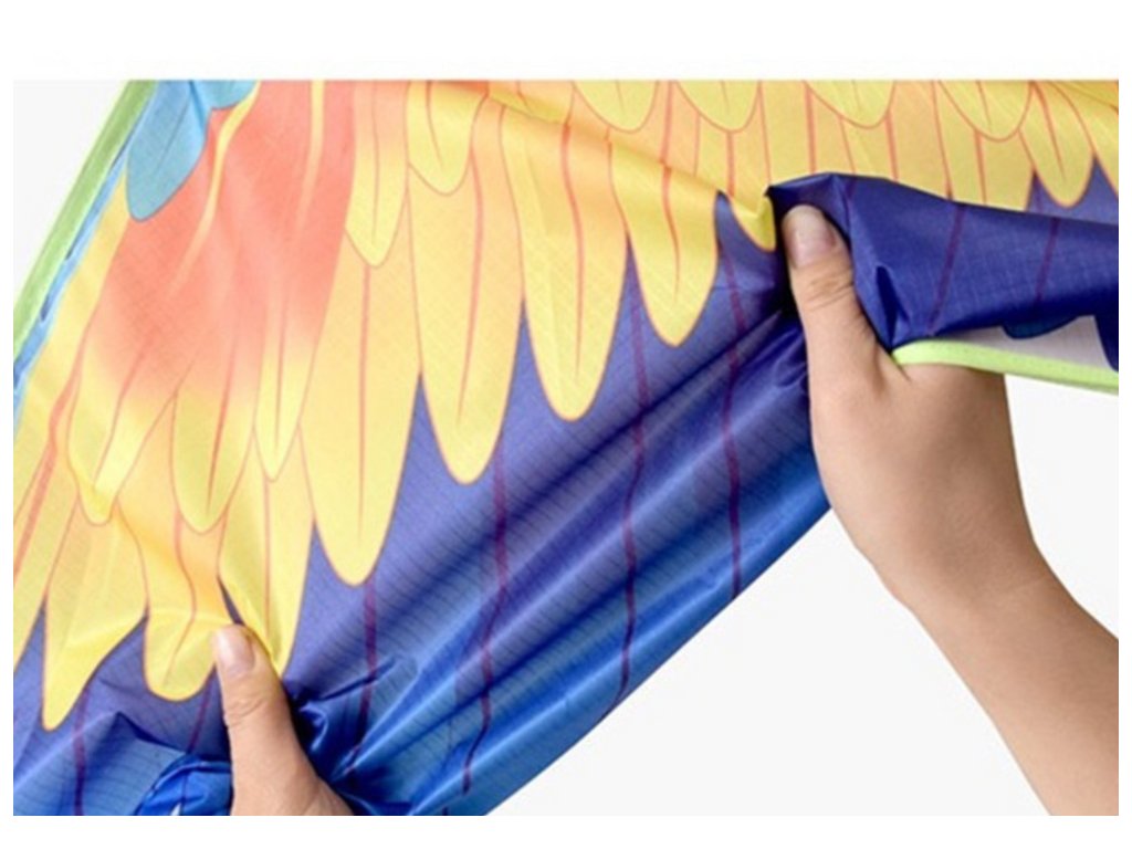 Tento drak je pravým barevným mistrovským dílem a působivou konstrukcí, která zaujme svou velikostí i jedinečným vzhledem. Je vyrobený z odolného nylonového materiálu, který je lehký i odolný vůči povětrnostním podmínkám, což z něj dělá ideální hračku pro venkovní hraní.