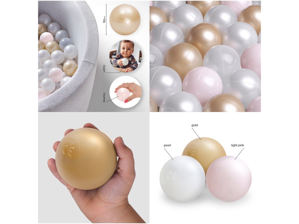 Míčky do suchého bazénu Ø 6 cm 200 ks (perleťové, zlaté, perleťově světle růžové)