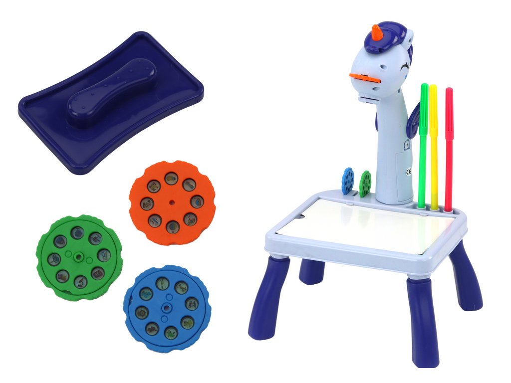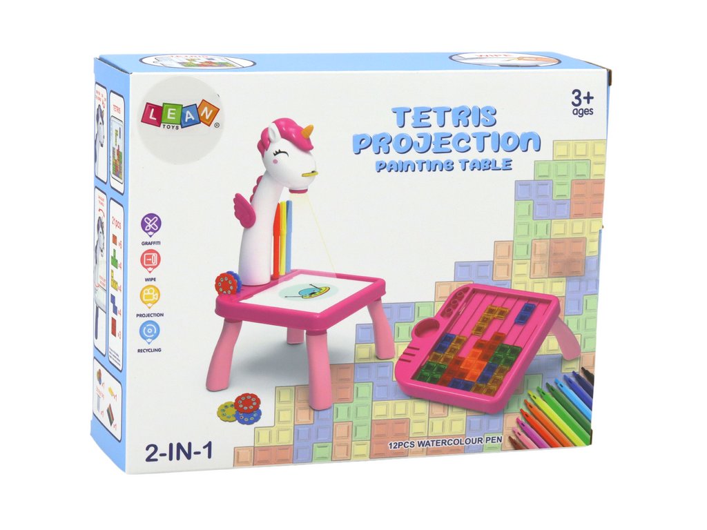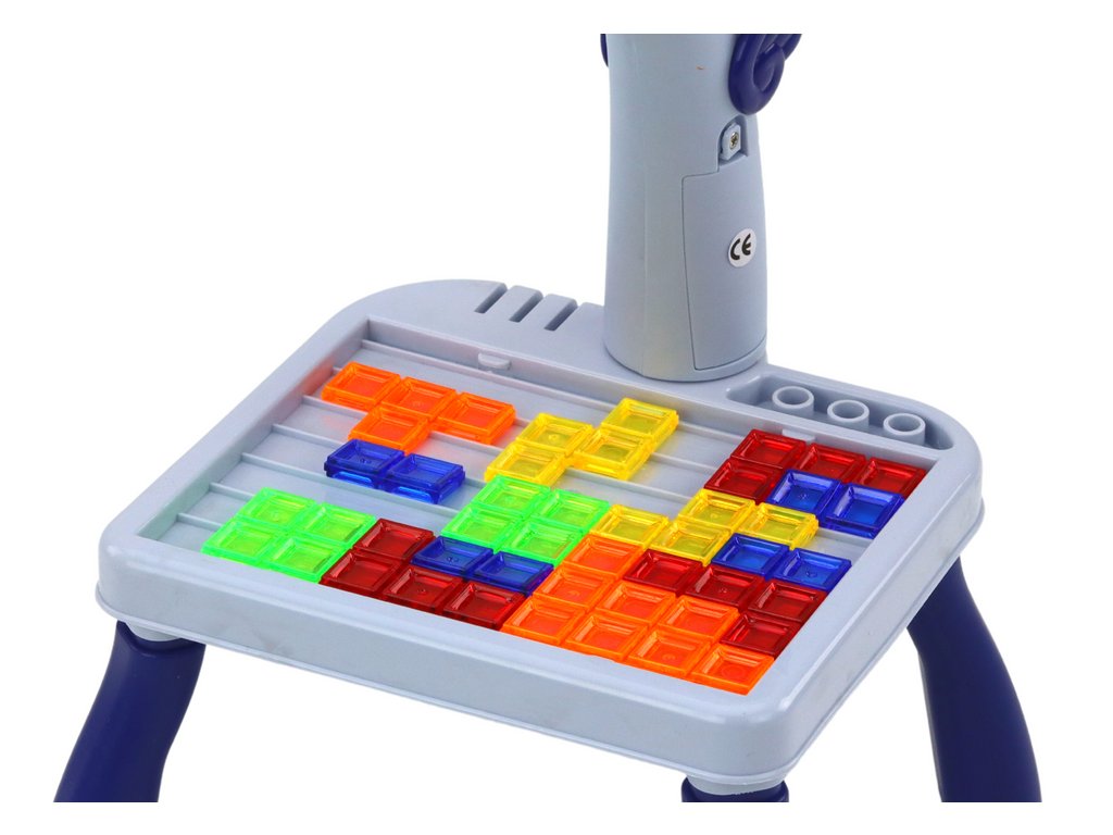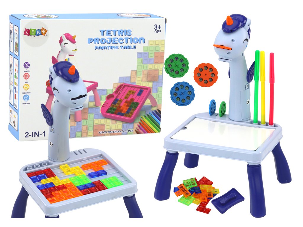 Mini projektor stolek Tetris 2v1 jednorožec modrý