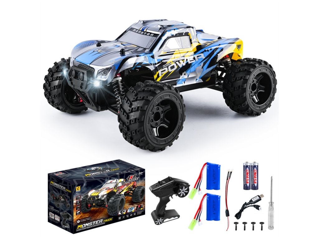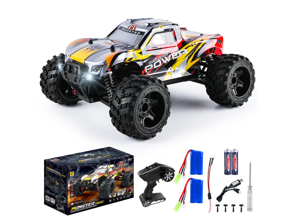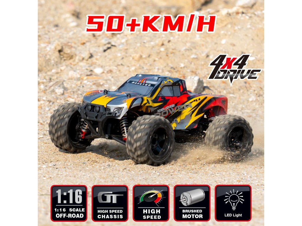 Zažijte neuvěřitelné závodní dobrodružství s tímto vysokorychlostním Monster Truckem na dálkové ovládání v měřítku 1:16. Tento RC vůz je navržen pro maximální výkon a zábavu, ať už jezdíte na silnici, v terénu nebo překonáváte překážky.