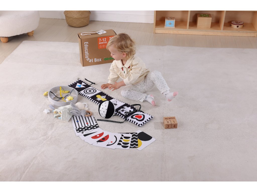 Montessori box XXL 18ks dárek pro novorozence 7v1 Zrak Sluch Hmat