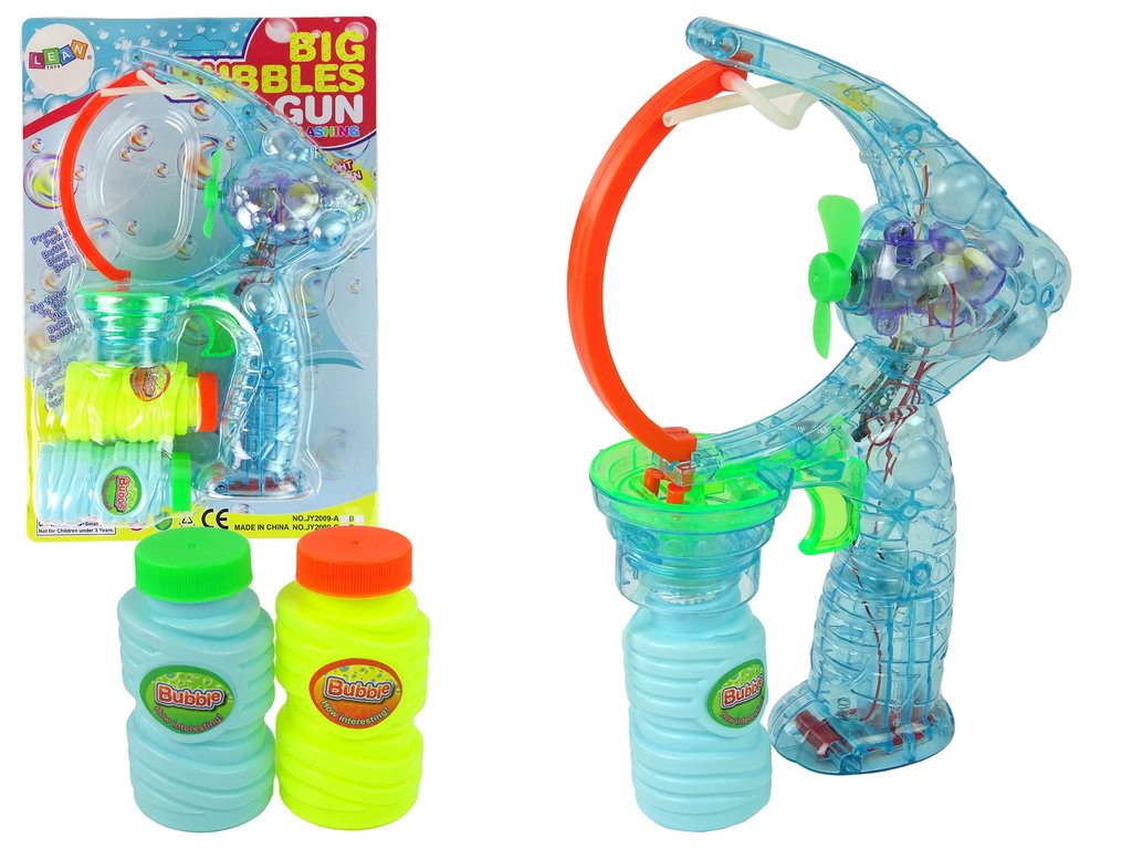 Objevte velkou pistoli na mýdlové bubliny, která vám vrátí radost z každého okamžiku! Se svými rozměry 24 cm x 6 cm x 18 cm je to senzační zařízení, které funguje na baterie (3 x AA/LR6 - nejsou součástí balení). Tato pistole obohacuje hru mnoha způsoby: větrný mlýn účinně vyfukuje bubliny, veselá melodie dodává zvukové kouzlo a bubliny se rozsvěcují různými barvami a vytvářejí malebné vizuální efekty.