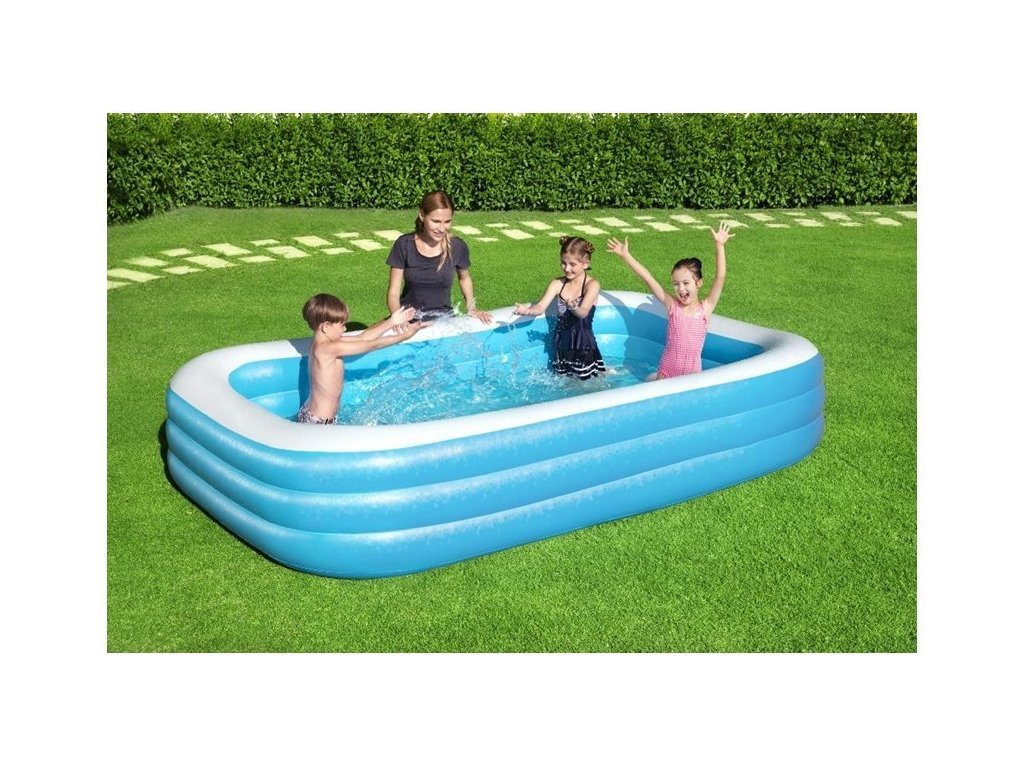 Velký, spolehlivý bazén pro celou rodinu, ve kterém mohou děti volně plavat. Bazén je lehký, takže ho můžete snadno přemístit tam, kde je v danou denní dobu nejtepleji. Snadno se nafukuje a vyfukuje, jeho skladování nebude problém.