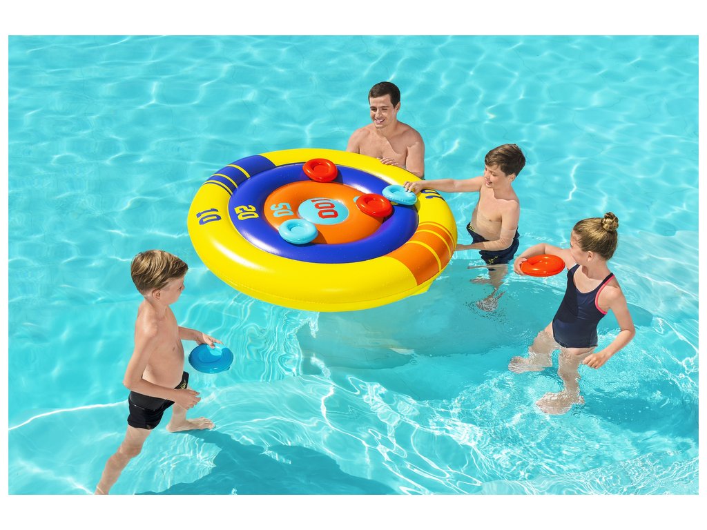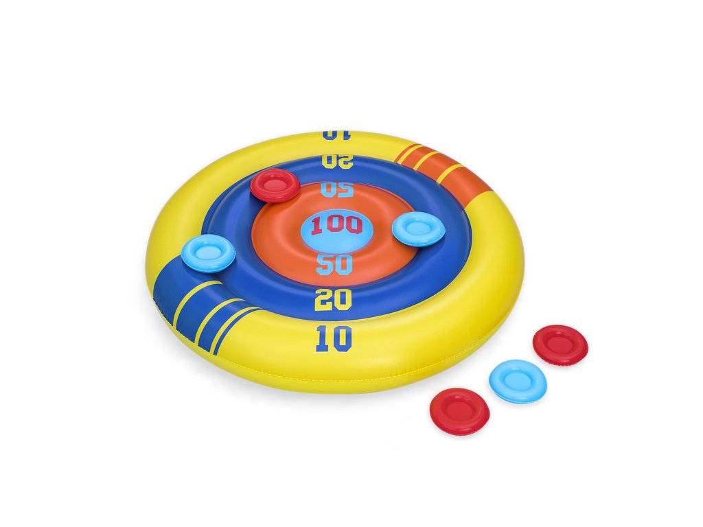 Nafukovací hra do bazénu šipky mají průměr 140 cm. Nafukovací štít je perfektní venkovní hrou do bazénu pro celou rodinu. Zahrnuté frisbee v různých barvách budou použity k soutěži v týmech. Hra trénuje přesnost a koordinaci ruka-oko. Hra poskytne spoustu zábavy nejen pro děti, ale i pro dospělé. Terč je vyrobena z odolného materiálu a je odolná proti poškození.