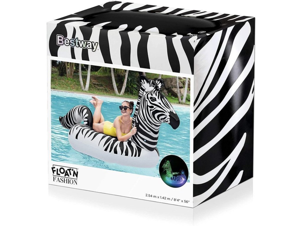 Nafukovací zebra s LED osvětlením má rozměr 254 x 142 cm a nosnost 90 kg. Nafukovací zebra je skvělý způsob, jak relaxovat v létě. Krásné barvy a originální tvar jistě potěší všechny milovníky vodního odpočinku.