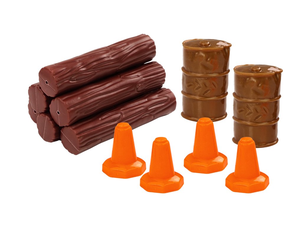 Přívěs má odnímatelné boční strany, což usnadňuje nakládání a vykládání zboží a zvyšuje možnosti hraní. Na přívěsu se nacházejí čtyři silniční kužely, které mohou být použity k simulaci prací na silnici nebo jiných situací, které vyžadují zabezpečení prostoru. Model obsahuje dva sudy, které mohou být použity jako náklad pro přepravu různých materiálů. Přívěs je naložen kládami dřeva, což umožňuje simulaci přepravy stavebních nebo lesních materiálů. Nákladní auto má pohon, který umožňuje samostatný pohyb modelu.