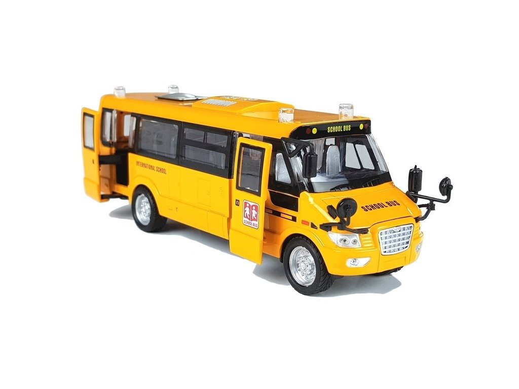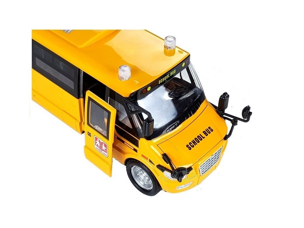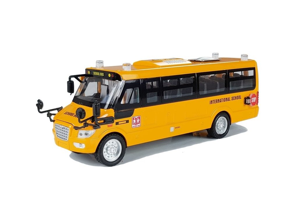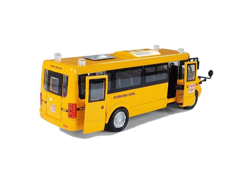 Školní autobus má pohyblivé částí, jako jsou otevírací dveře na boku a vzadu. Autobus má otevírací kapotu. Vozidlo je vybaveno osvětlením a reproduktorem, který vydává zvuk běžícího motoru. Vůz je vybaven natahovacím pohonem.