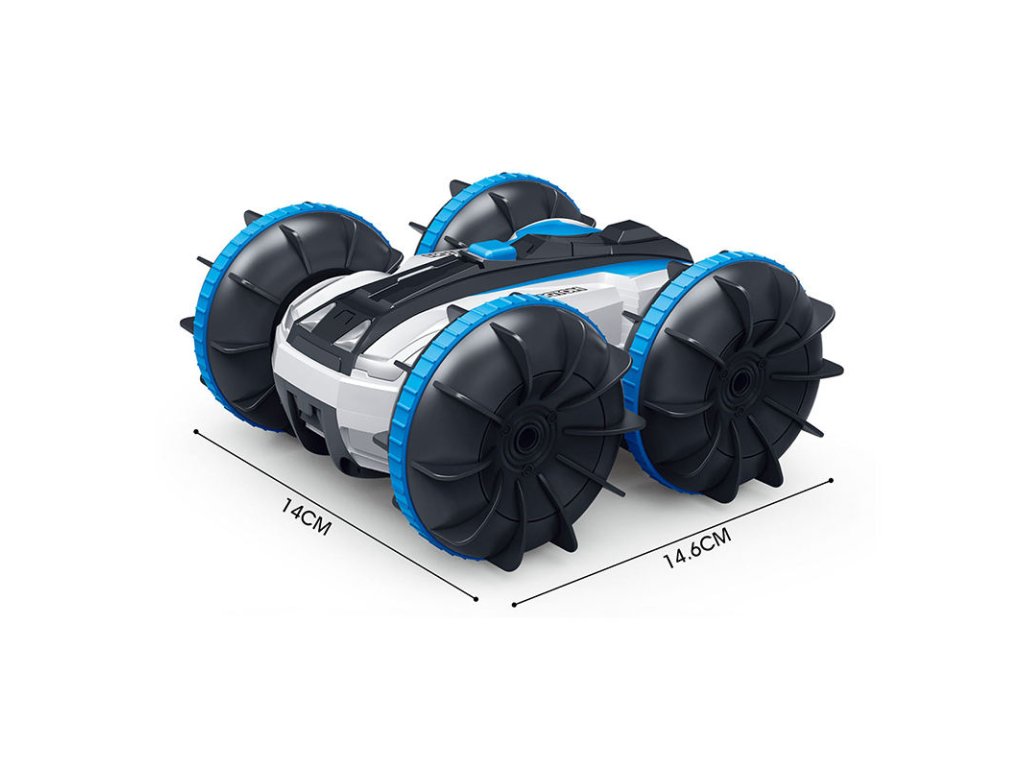 Akrobatické Auto: Díky designu s pohonem všech čtyř kol toto auto snadno překonává terén, písečné pláže, bláto, trávu či moře. Perfektní RC hračka pro chlapce ve věku 6-10 let, která poskytne spoustu zábavy na souši i ve vodě.