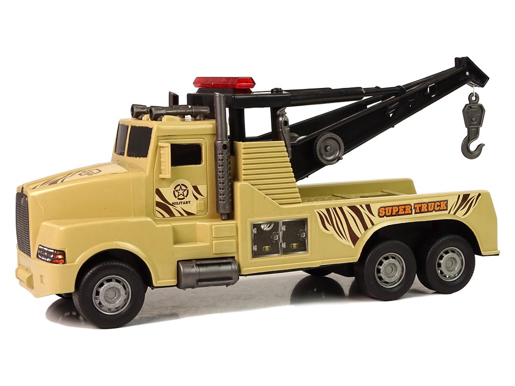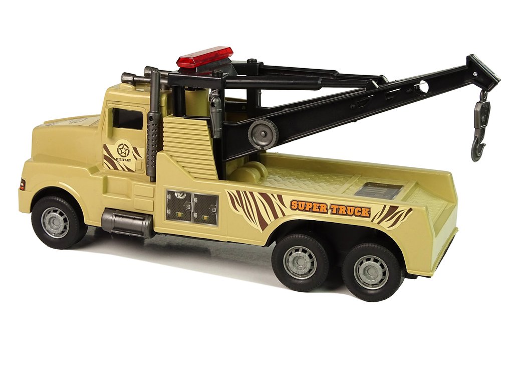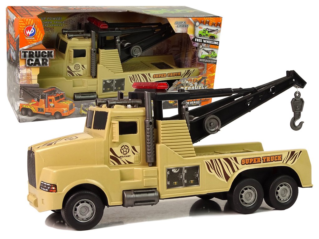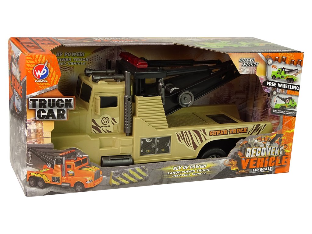 Každý detail je dokonale reprodukován. V zadní části vozu je jeřáb s tažným lanem a na úplném konci je háček, stačí připojit další hračku a převézt ji na správné místo. Další výhodou je navíjecí tažné lano pomocí kliky na boku vozu a třecí pohon.