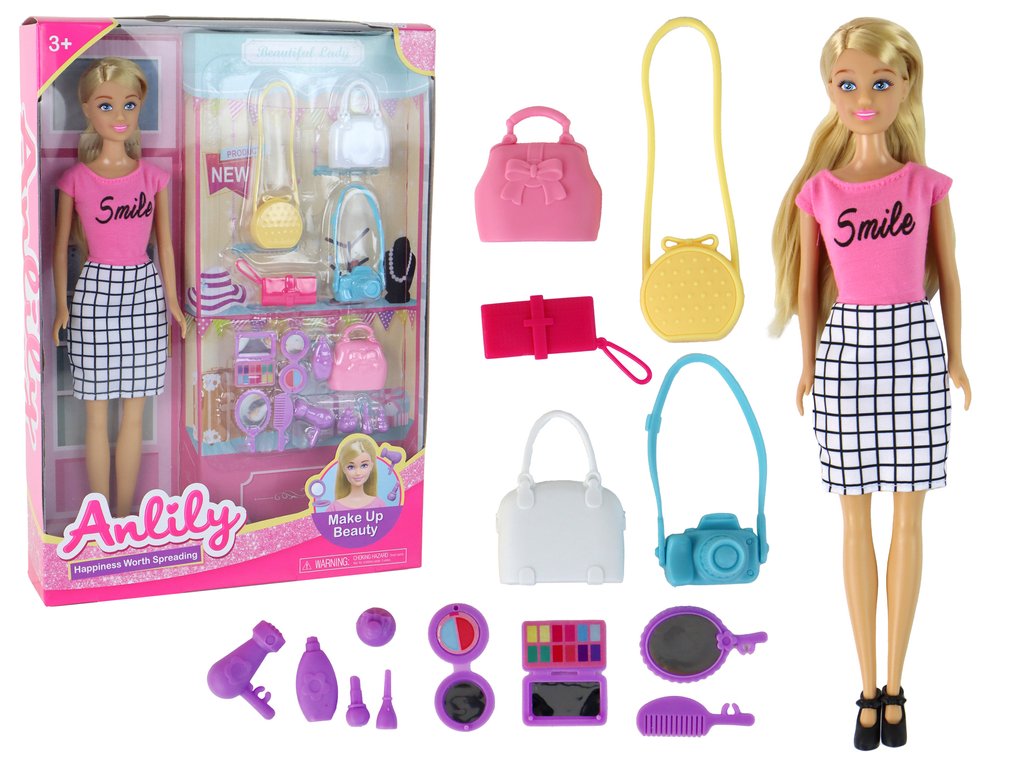 V sadě najdete panenku s dlouhými blond vlasy, oblečenou do stylových šatů. Součástí sady je také make-up a vlasové doplňky, aby si děti mohly vytvářet vlastní trendy a styly. Sada navíc obsahuje až pět různých kabelek na výběr, díky nimž je možné sladit je s jakoukoli příležitostí.