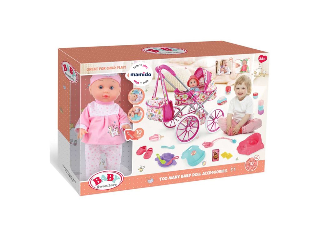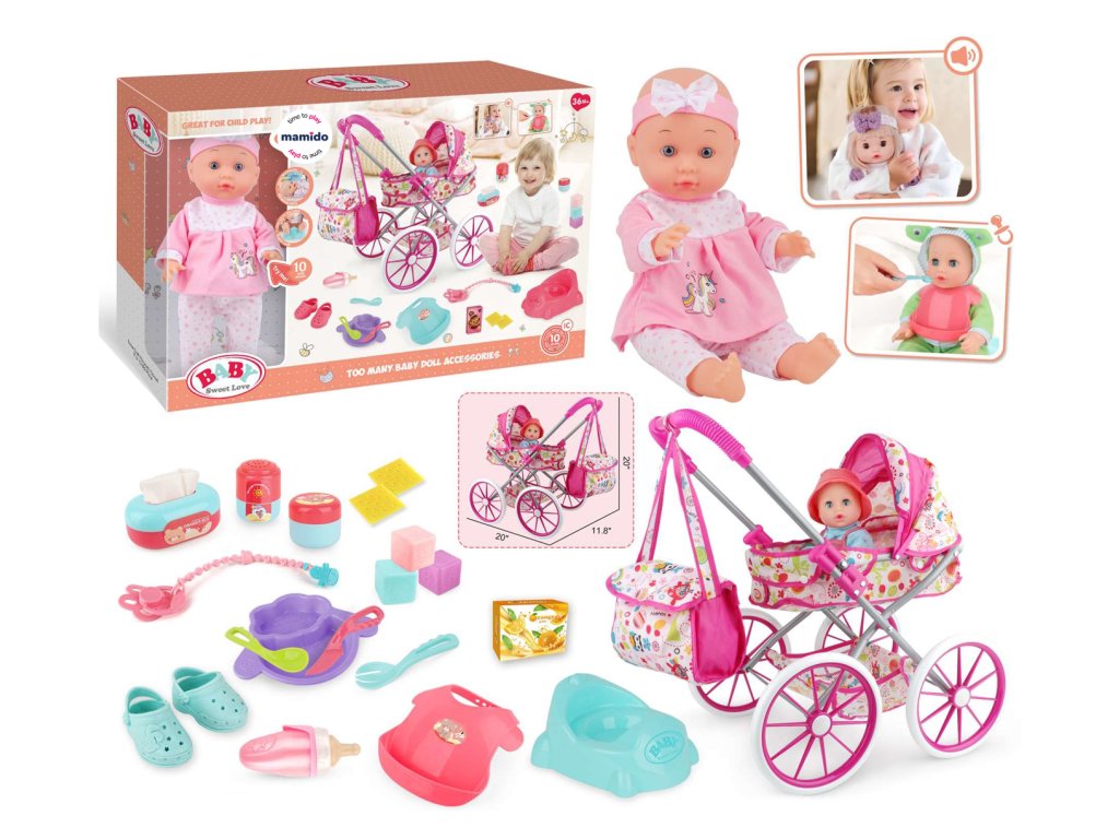 Panenka miminko s kočárkem a doplňky Baby Sweet Love MT1596