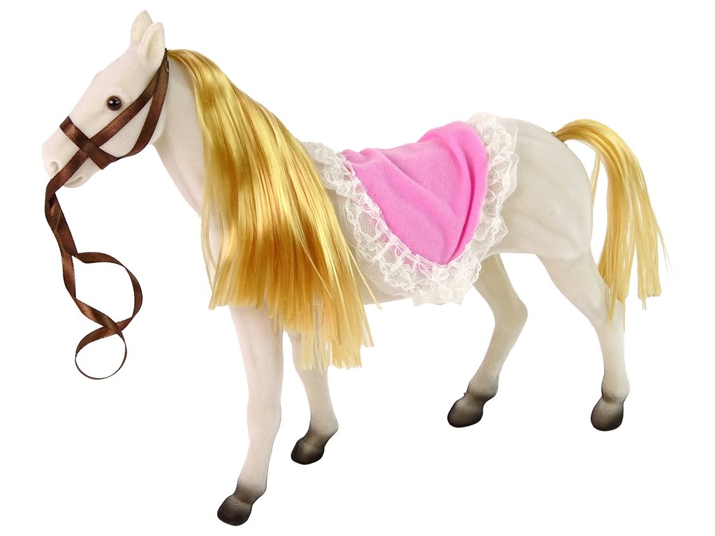 Poník je vyroben z materiálu příjemného na dotek. Figurka věrně reprodukuje skutečný vzhled zvířete. Součástí sady je kartáč, ale i hřeben a další vlasové doplňky, které vám umožní o koně pečovat, česat ho nebo vytvářet krásné účesy na jeho zářivé, dlouhé hřívě.