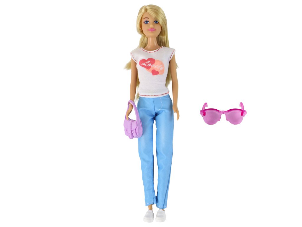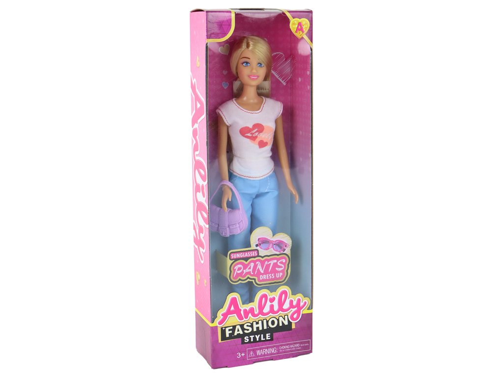 Panenka Anlily je oblečena do bílé blůzy se srdíčky, modré kalhoty a bílé sportovní boty, což jí dodává stylový vzhled. Ale to není vše! V balení najdete také fialovou kabelku a růžové brýle, které umožňují ještě více kreativní zábavy a stylingu.