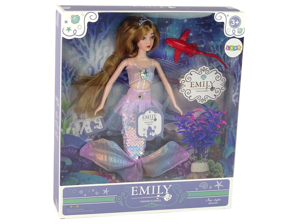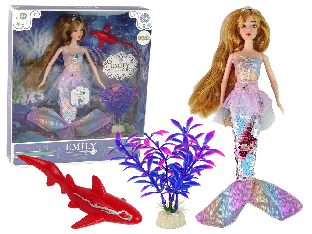 Nejen ocásek upoutá pozornost - krásná halenka s ozdobným kamínkem dodává Emily půvab a charakter. Tím však zajímavosti této sady nekončí. Kromě panenky Emily, mořské panny, v ní najdeš také rozkošného červeného žraloka ( 12 cm x 3,5 cm x 5,5 cm ) a rozkošně zdobenou fialovo-růžovou mořskou rostlinu ( 13 cm x 4 cm x 3 cm ), která obohatí svět podmořských dobrodružství.
