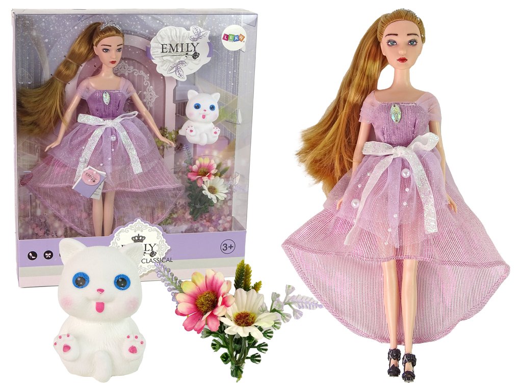 Kouzelný svět fantazie začíná s panenkou Emily, která okouzlí svým elegantním vzhledem i roztomilým zvířecím kamarádem. Tato panenka pro děti je ideální volbou pro hraní příběhů plných dobrodružství, péče a přátelství.Emily má dlouhé blond vlasy, upravené do culíku, které působí jemně a slavnostně. Obléká dlouhé šaty s růžovými detaily, perličkami a mašličkami, které dodávají panence pohádkový vzhled. Celkový styl doplňuje tiára a černé boty na podpatku s drobnou růží.