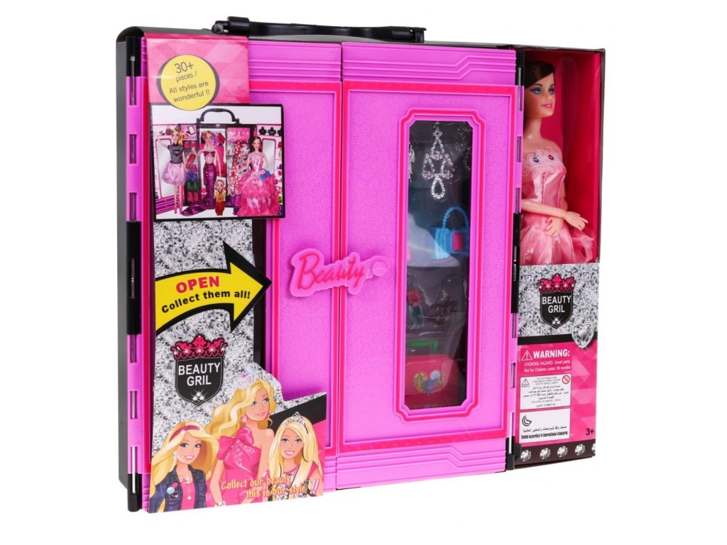 Velký šatník s panenkou je snem každé mladé dámy. Sada se skládá z 30 okouzlujících doplňků. Šatník pro panenku má rukojeť pro přenášení, takže ho dítě může vzít kamkoli sebou. Hra s touto sadou naučí dítě udržovat ve svém pokoji pořádek.