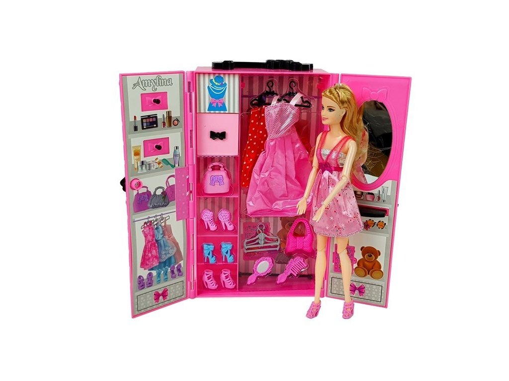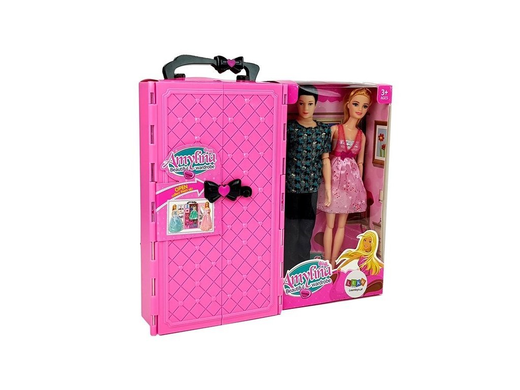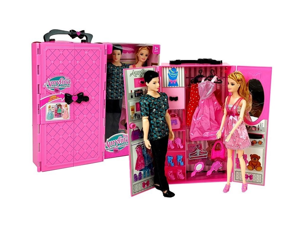 Miluje Vaše dítě oblékat svou panenku? Sadu panenek s šatníkem, která je přenosná můžete vzít kamkoli s sebou. Úžasná skříň obsahuje mnoho pokladů, které potěší malou holčičku. Uvnitř skříně je zrcadlo s místem na malování, na druhé straně je místo pro zavěšení doplňků. Sada obsahuje také dvě panenky, chlapec má tmavé krátké vlasy a tyrkysové černé tričko. Dívka má krásné vzdušné růžové šaty, další oblečení pro panenku naleznete v šatníku.