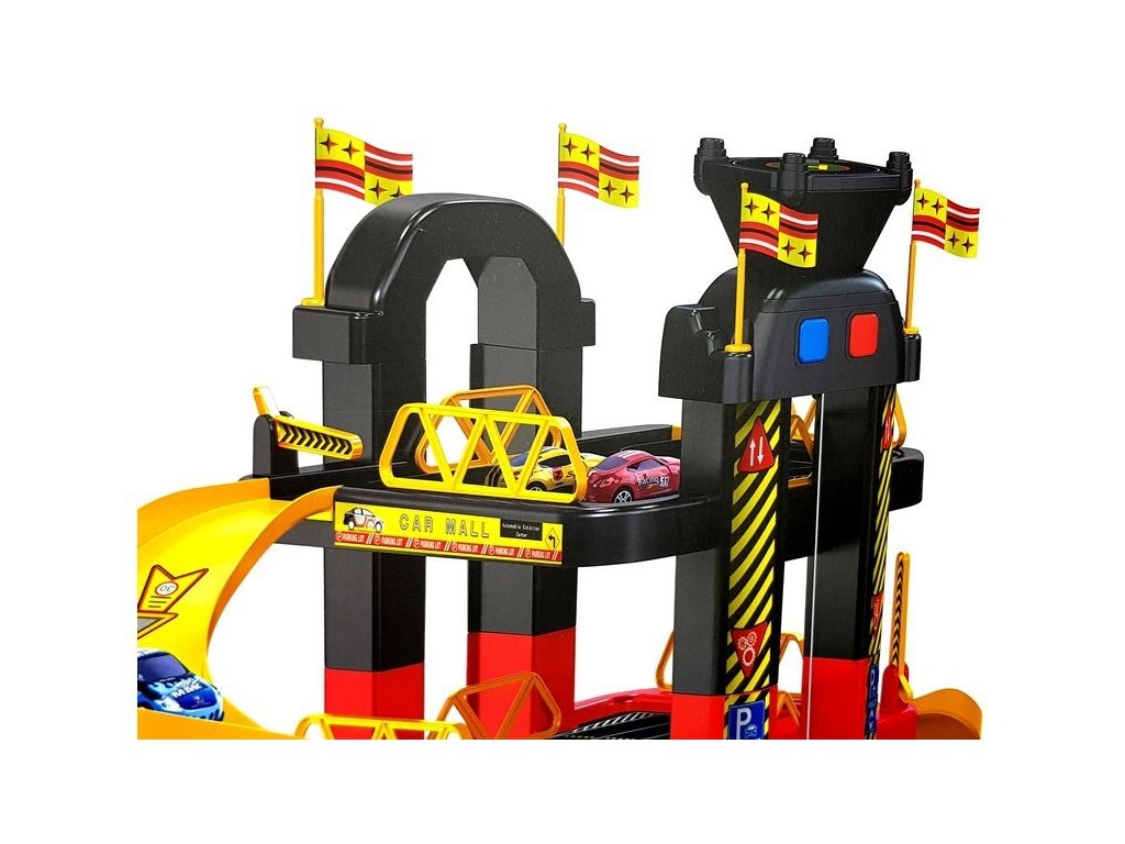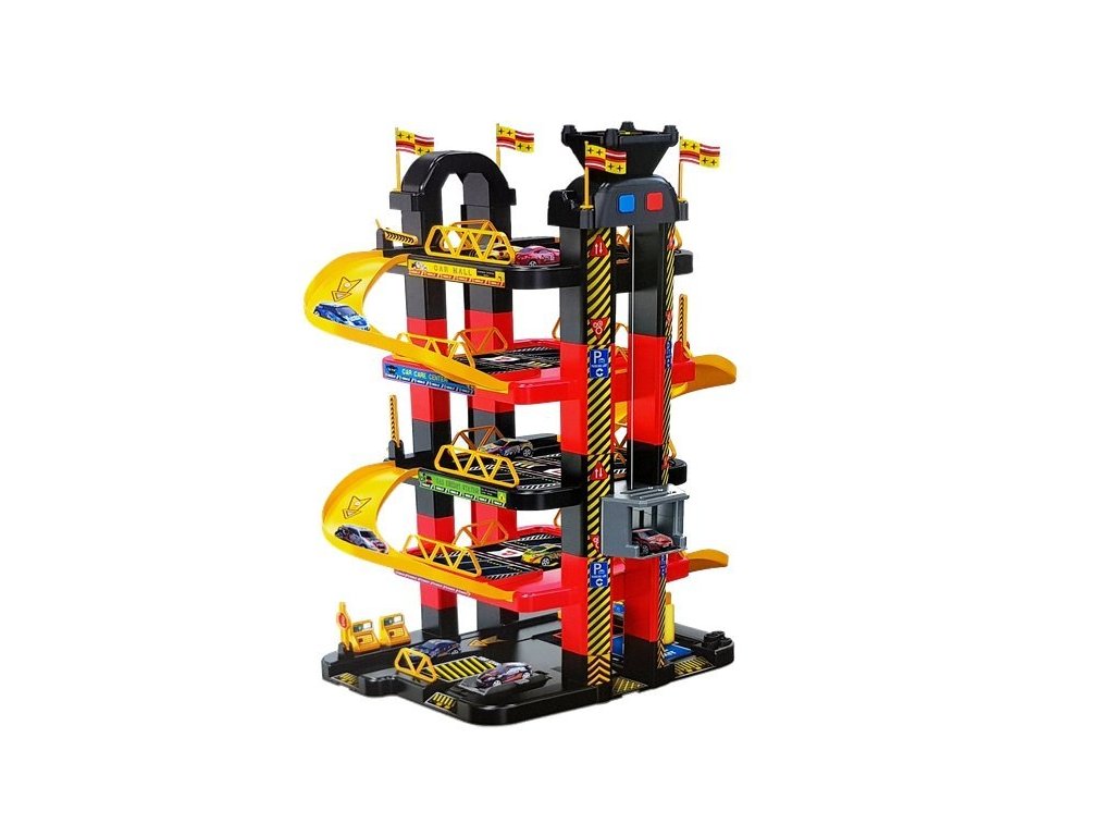 Parkoviště se skládá z 5 úrovní. Od úrovně 2 do 5 se nachází parkoviště, kde zaparkujete svá auta. Další úrovně jsou spojeny sjezdy s výtahem. V horní části budovy jsou dvě ovládací tlačítka výtahu. Díky tomu mohou autíčka jezdit nahoru a dolů, jsou doprovázeny světly, které dodávají efekty.
