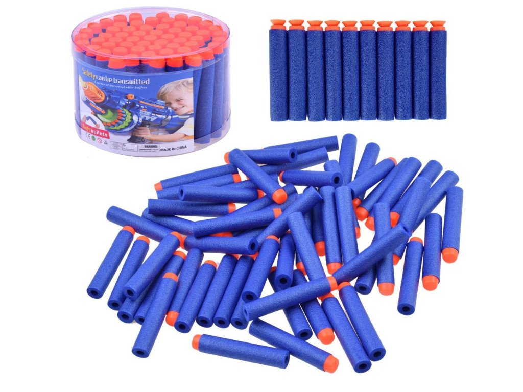 Sada 100 měkkých pěnových nábojů pro pistoli je zárukou fantastického dobrodružství. Náboje jsou zakončeny gumovým prvkem nebo gumovým prvkem s přísavkou.