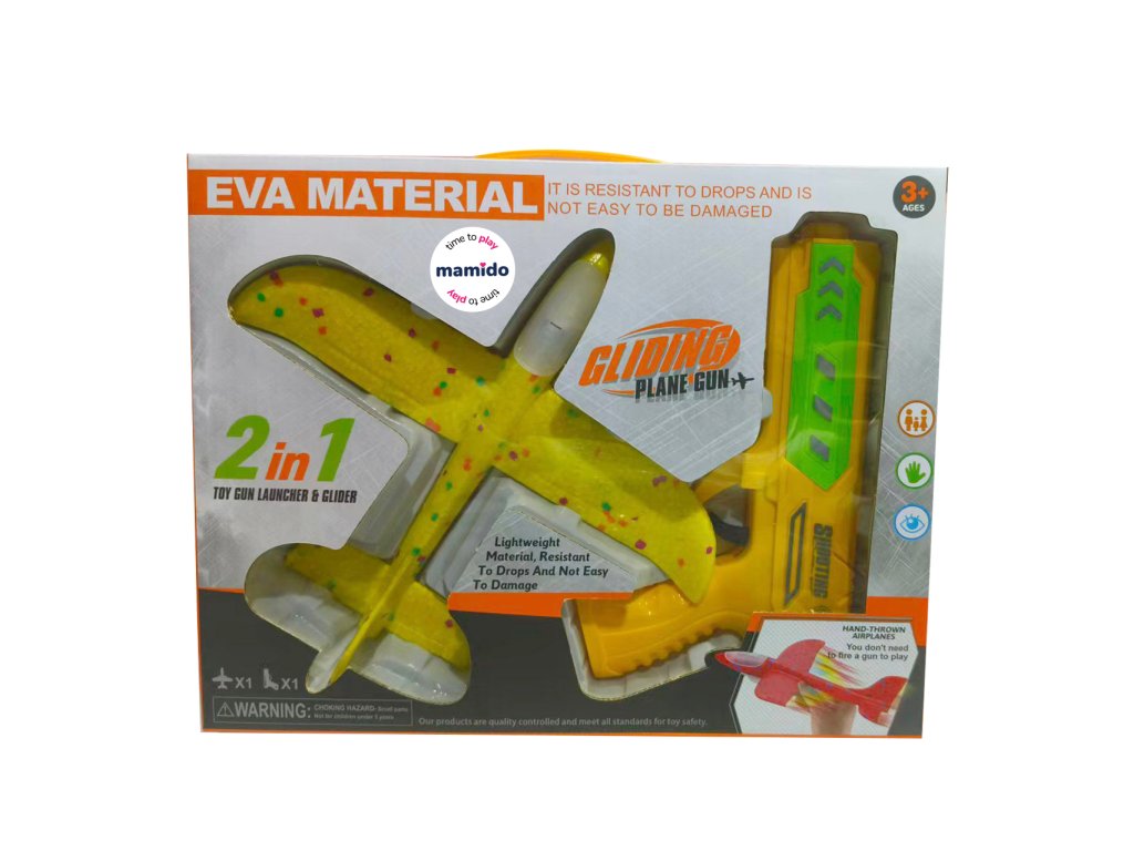 Zažij skvělou zábavu s originální 2v1 pistolí a létajícím kluzákem! Stačí nasadit letadélko z odolné EVA pěny na pistoli, natáhnout a vystřelit – letadlo vzlétne a klouže vzduchem. Díky lehkému materiálu je bezpečné a odolné proti nárazům, takže vydrží i divočejší hru. Některé modely mají navíc i barevné LED světlo, které dodá startu ještě větší efekt.