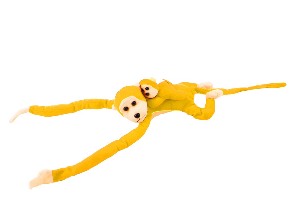Plyšová opička s mláďátkem 70 cm žlutá