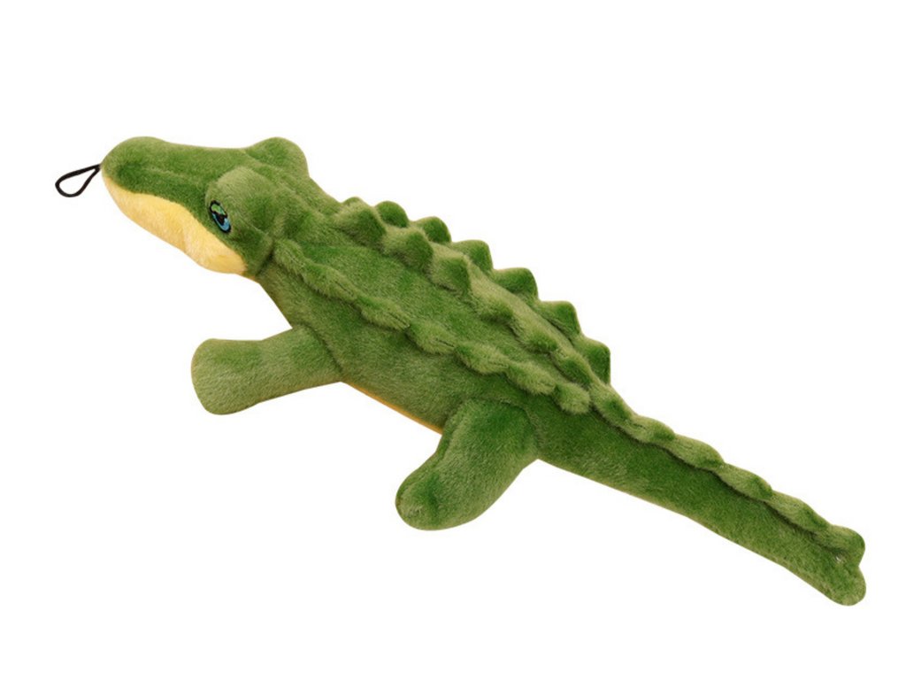 Pískací plyšový krokodýl je měkká hračka o délce 30 cm, ideální pro děti i domácí mazlíčky. Hebký materiál a pískátko uvnitř dodávají hře zábavný rozměr. Díky praktickému úchytu ho lze zavěsit na kočárek nebo postýlku.