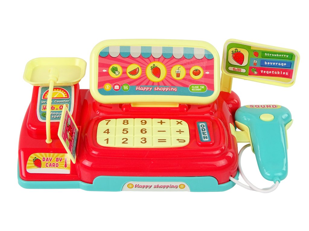 Pokladna je provedena v červené barvě s prvky žluté. Falešné peníze vám umožní platit za potraviny. Skener vydává realistický zvuk, který je slyšet při nákupu na trhu. Prezentovaná hračka je maximálně bezpečná hračka, nemá žádné ostré konce a je vyrobena z nejkvalitnějšího materiálu. Určitě upoutá dětské oko a povzbudí je ke hře.