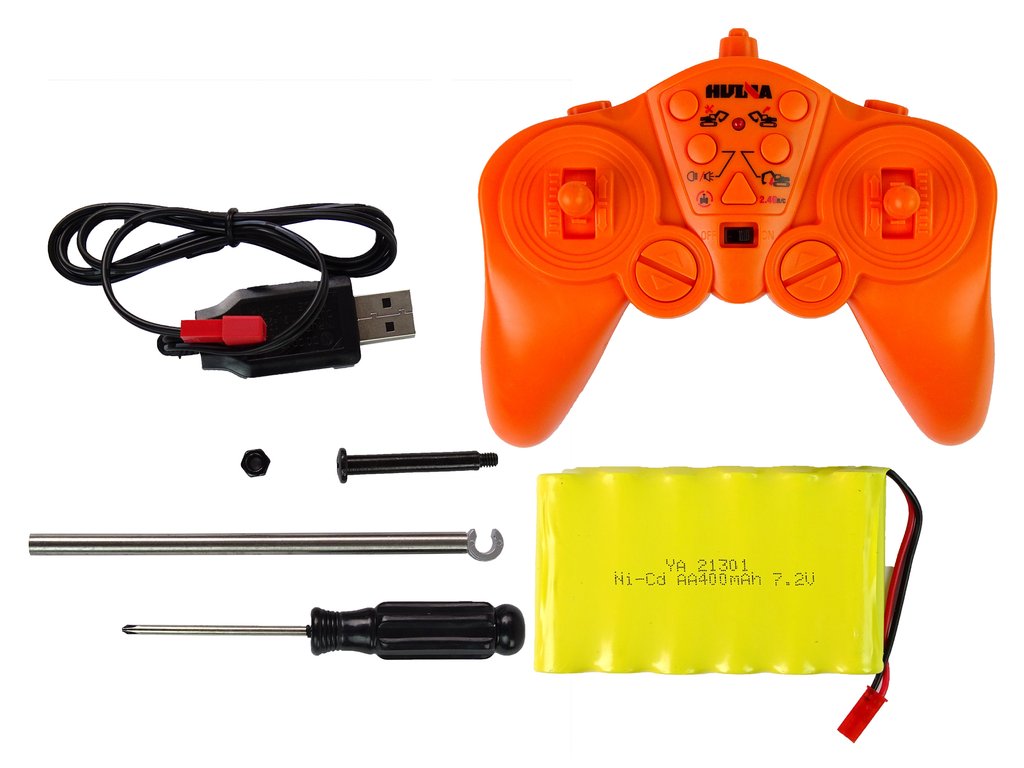 Ovládání dálkového ovládání R/C je velmi jednoduché, dva joysticky umožní pohodlné manévrování. S jeho pomocí může obsluha rypadla řídit tak, že mění směr dopředu/dozadu a vpravo/vlevo a především pohybuje lžící.