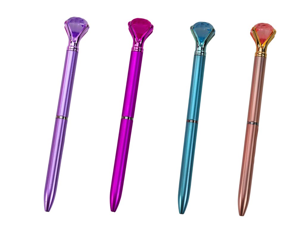 Tato jedinečná propiska spojuje styl a praktičnost, a díky ozdobě ve tvaru diamantu na svém konci působí elegantně a originálně. S modrým inkoustem, který zajišťuje hladké a plynulé psaní, se stává skvělým společníkem pro každodenní poznámky i výjimečné příležitosti. Ideální volba pro ty, kteří chtějí svým písemnostem dodat špetku elegance a osobitosti.